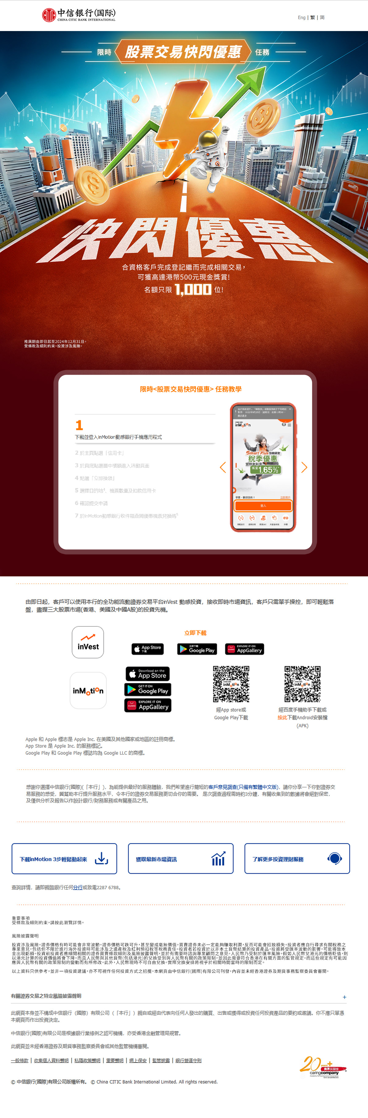 Main visual and promo webpage design for the CHINA CITIC BANK astronaut 3D graphic for two consecutive years. Application of current trends, utilizing 3D visual design and AI-generated imagery.